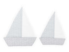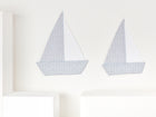 Die Segelboote sind zwischen 36 und 42 cm groß, bestehen Aussen aus 100% Baumwolle und sind in der Waschmaschine waschbar. Damit sie stabil und steif an der Wand hängen sind sie von Innen zusätzlich mit leichtem Vlies verstärkt. Inhalt: 2 Segelboote.