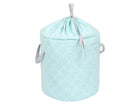 Stoffkorb mit Griff: Der praktische Aufbewahrungskorb in weiße Halbkreise auf Pastelmint kommt mit zwei handlichen Griffen aus Stoff, sodass er leicht getragen werden kann